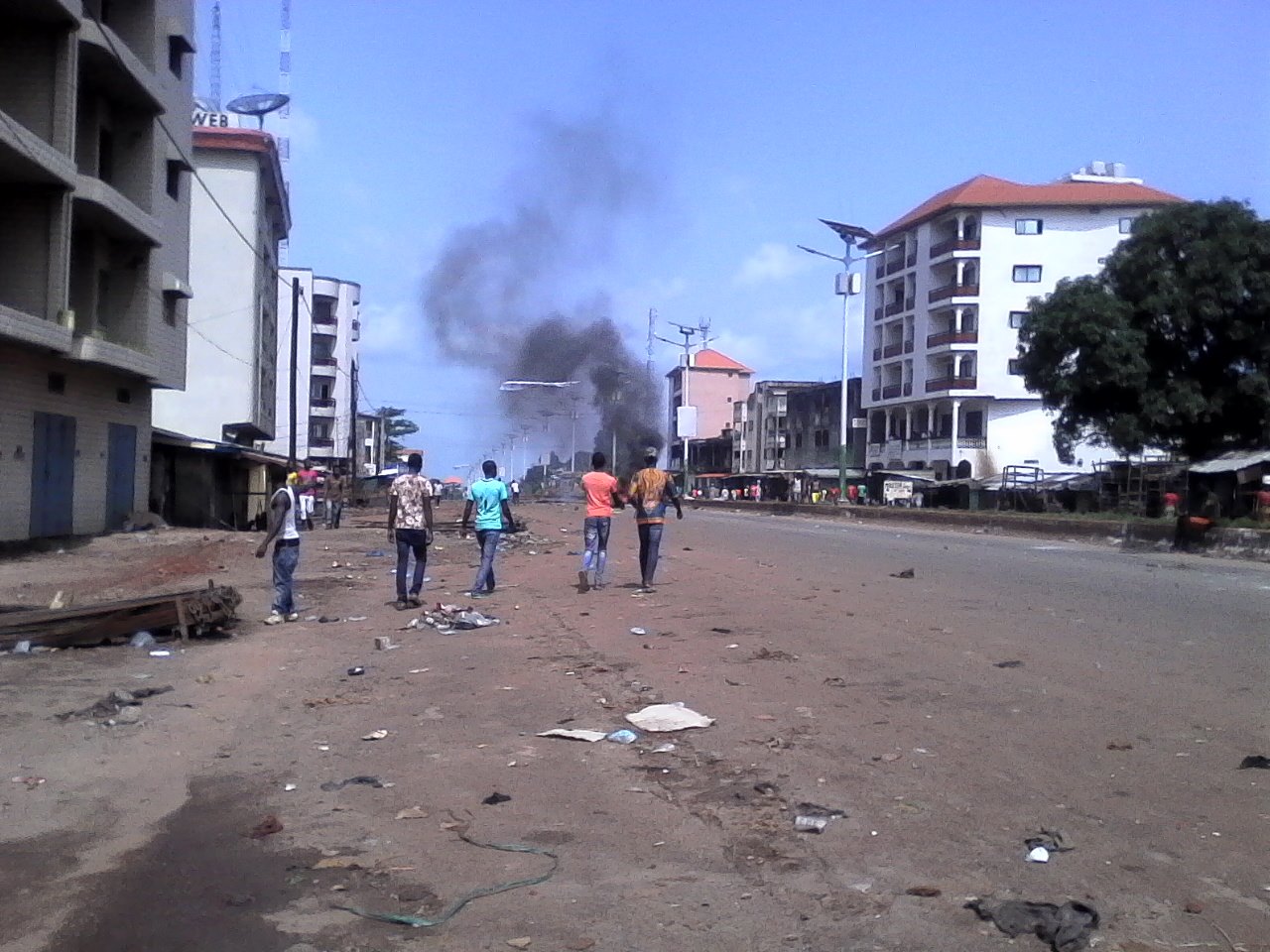 Après de violents affrontements avec les contre-manifestants, issus des rangs du Rpg (rassemblement du peuple de Guinée) le parti au pouvoir, les forces de l’ordre vont user de gaz lacrymogène pour maîtriser la foule sans y parvenir Résultat: un mort, des magasins vandalisés, détruits et incendiés. Les affiches publicitaires à l’effigie du président sortant, Alpha Condé, sont déchirées, brûlées, des stands de campagne installés, tout le long de la route ”leprince” et sur l’autoroute Fidel Castro, systématiquement saccagés. Ni la police, ni la gendarmerie ne ”peuvent” intervenir. Politiquement trop risqué, justifierons plus tard des responsables de la police et de la gendarmerie, malgré des unités déployées à certains endroits. Ce jour là, l’UFDG dictera sa loi et règnera en maître sur la capitale guinéenne. Face à cette déferlante, les militants du camp adverse étaient obligés de rester terrés chez eux, même dans les quartiers de la capitale favorables au pouvoir.