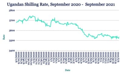 Le Shilling s’est affaibli par rapport au dollar, se négociant à 3538 contre 3528 à la fin de la semaine dernière, alors que la levée partielle du confinement de l’Ouganda en raison de la COVID-19 a stimulé une reprise de l’activité commerciale qui a fait augmenter la demande des importateurs pour le billet vert. «Nous nous attendons à ce que cette dynamique maintienne la pression sur le Shilling au cours des sept prochains jours».